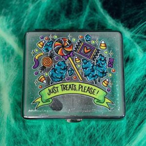 Keep your joints safe and stylish this Halloween with our new Just Treats Please! Joint Holder Case. We teamed up with Tarryn Ann to create a series of cute, Halloween prints for these stash cases! Check out the rest of her work on Instagram.