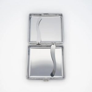 These cute cases can be used to store standard sized cigarettes, joints, birth control, business cards, credit cards, and money. They have two metal arms that help keep your stuff in place.